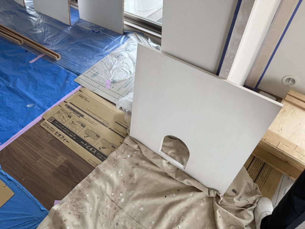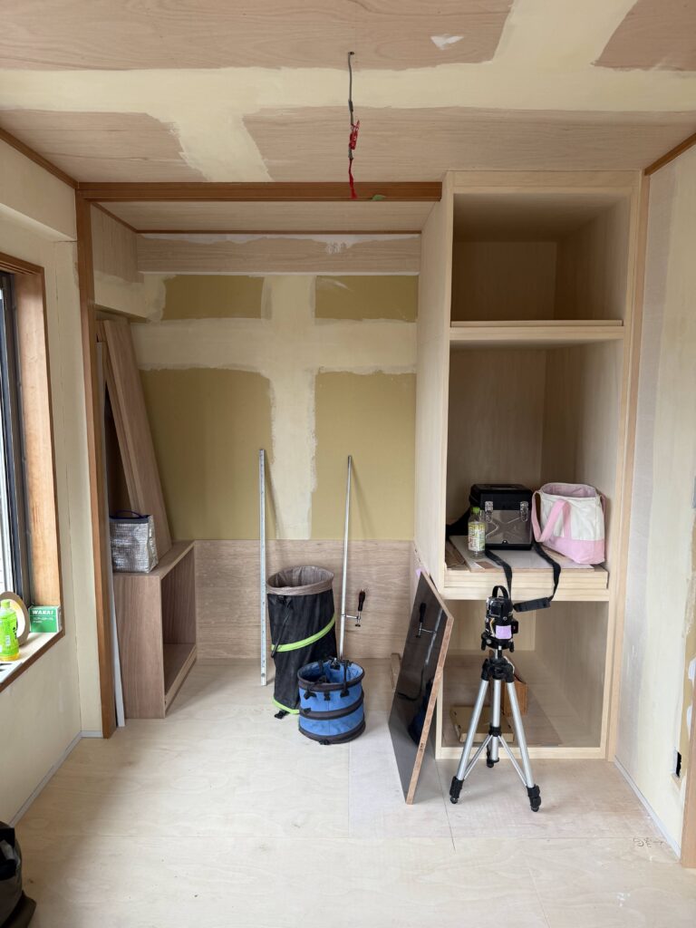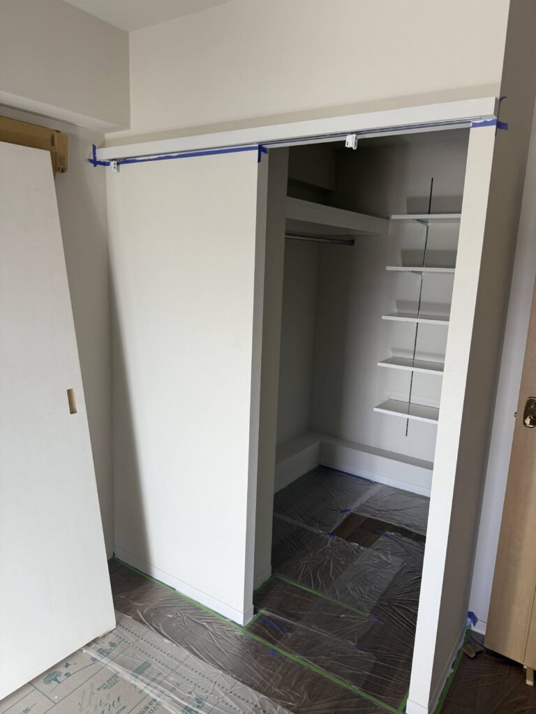 ウォークインクローゼットの収納も、ほぼ完成に近づいてきました。