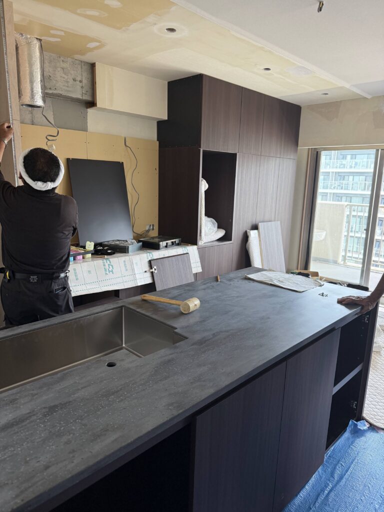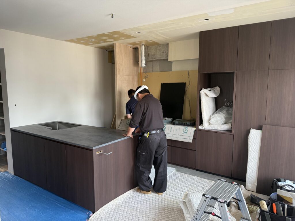 こちらは造作キッチンの搬入・取り付けの様子です。